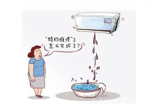 冷凝水進入集水盤,卻沒有流向室外的通道。慢慢的集水盤里的水滿了,就會往外溢,造成內機滴水。