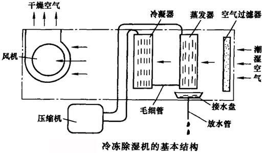 一般來(lái)講,冷凍除濕機(jī)主要是由蒸發(fā)器,冷凝器,壓縮機(jī),膨脹閥,風(fēng)機(jī)和外殼等部分組成的;