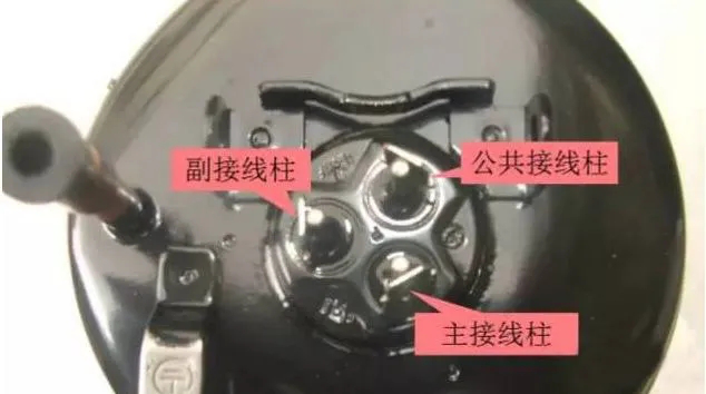 萬(wàn)用表的歐姆檔(一般200歐姆的檔位)測(cè)量每?jī)牲c(diǎn)之間的電阻值,阻值大的兩點(diǎn)(BC)為啟動(dòng)和運(yùn)轉(zhuǎn)繞組。剩的那個(gè)點(diǎn)(A)是公共點(diǎn)。然后把所測(cè)量的兩個(gè)點(diǎn)(B,C)再分別跟公共端連接,阻值較大的是啟動(dòng)繞組,小的為運(yùn)轉(zhuǎn)繞組。三點(diǎn)之間阻值關(guān)系為:BC=AB+AC。
